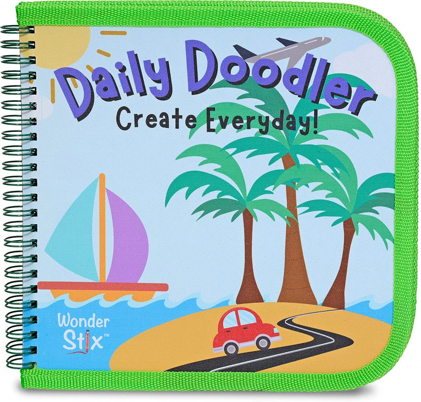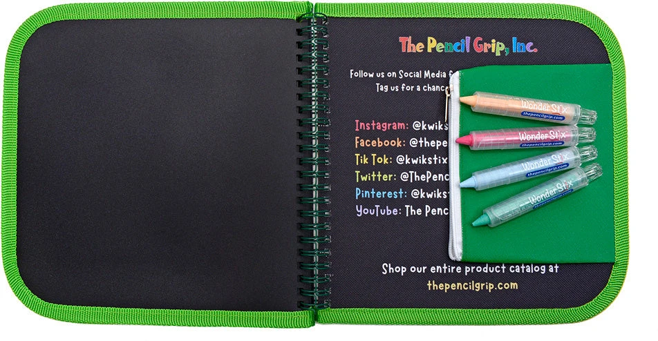 Encourage creativity every day with an activity book that has 8 wipeable blank pages! The cover features a travel scene to spark imaginations. It comes with 4 Wonder Stix and a travel pouch, making it a perfect eco-friendly activity for car trips or plane rides. The pages wipe clean with a damp cloth so it can be reused again and again! Try using it for practicing writing skills, giving prompts for doodling, or even learning math!