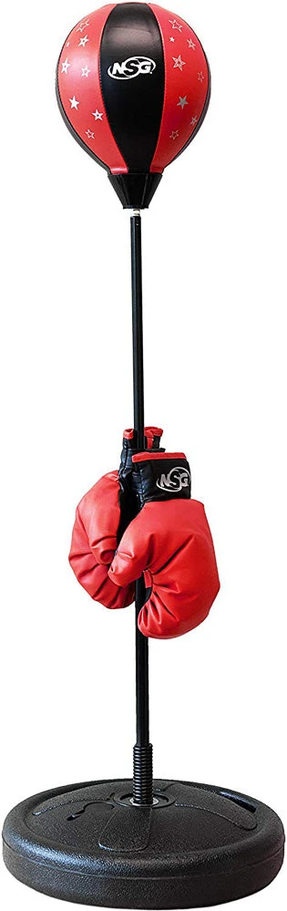 Young athletes will love keeping fit with this adjustable, inflatable sparring bag. Fill the base with sand or water for stability on any surface, then practice kicking and punching to build up dense muscles and bones for some serious strength! Gloves and pump included.