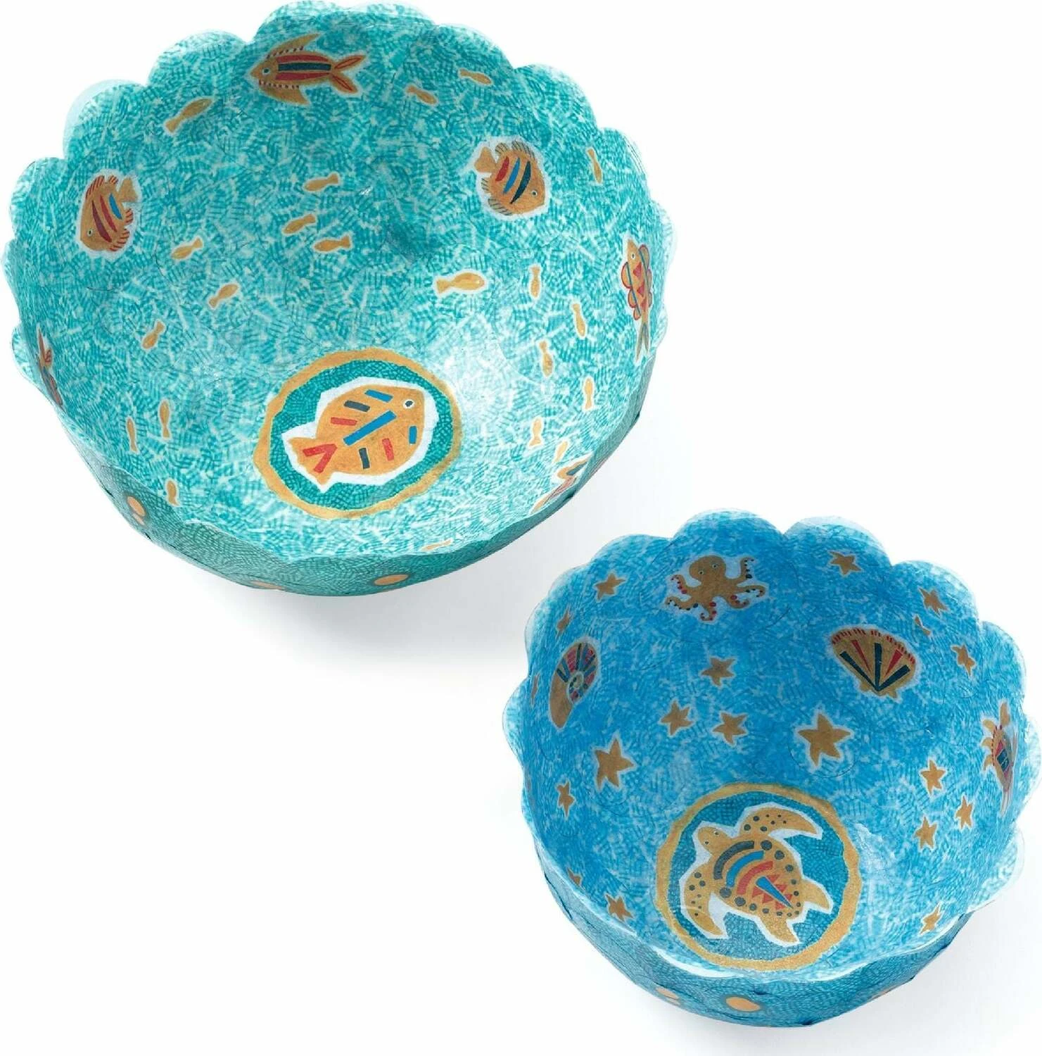 A comprehensive creative kit to make 2 decorative paper bowls using only paper and glue. Simply glue the big confetti onto the molds using the liquid glue, first on the inside and then on the outside of the bowl, leave to dry, and unmold them. How proud Djeco are to use these two lovely matching cubbies!