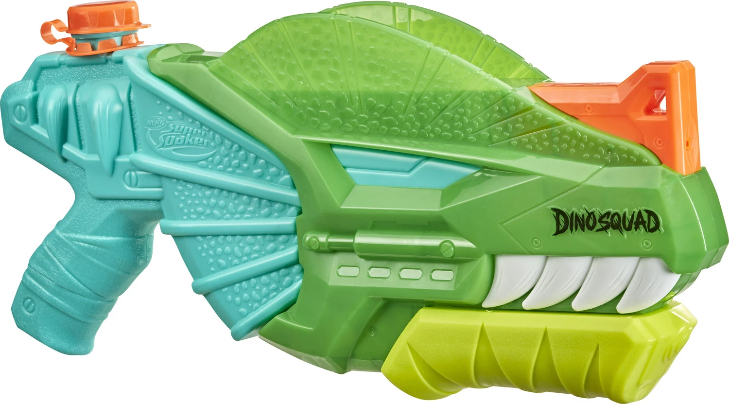 Nerf Super Soaker F04965L1. Product type: Soaker water gun, Recommended age (min): 6 yr(s), Recommended age (max): 99 yr(s), Theme: Dinosaur, Product color: Multicolor, Material: Plastic. Weight: 21.2 oz (600 g)