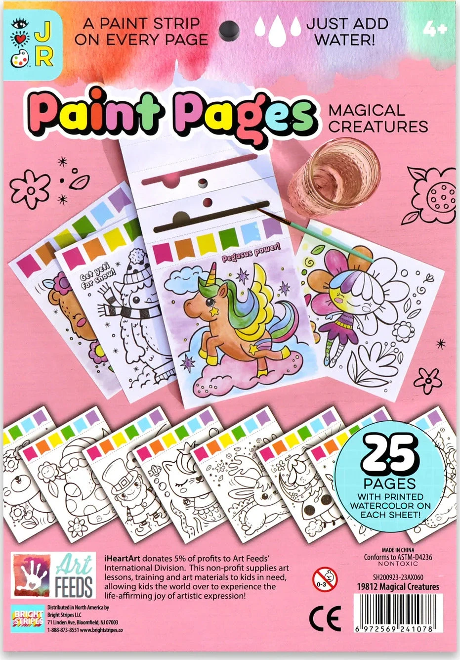 25 Pages with a paint strip on each page. Watercolor printed on each page, just add water! The adorable artwork in this watercolor painting book for kids has just the right amount of detail for young artists.