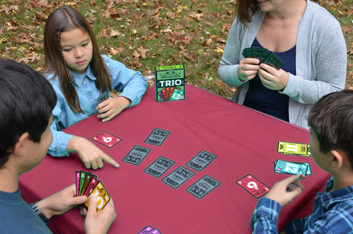 Can you find three of a kind? Reveal two cards – either from the middle, or by asking any player for their lowest or highest card. If you find a pair, keep playing. Get three of a kind and collect the trio. But if the numbers don’t match – the cards go back! With a little memory and a little luck, winning is easy as 1… 2… 3!